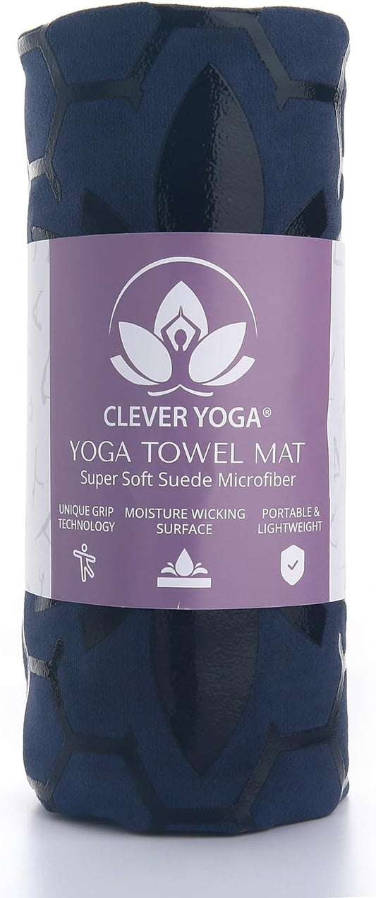 Hot Yoga Mat Towel – Non-Slip Grip for Hot Yoga, Sweat Absorbent, Honeycomb Silicone Grip, Stays Flat – Ideal for Pilates, Travel, Washable & Lightweight - Dark Blue